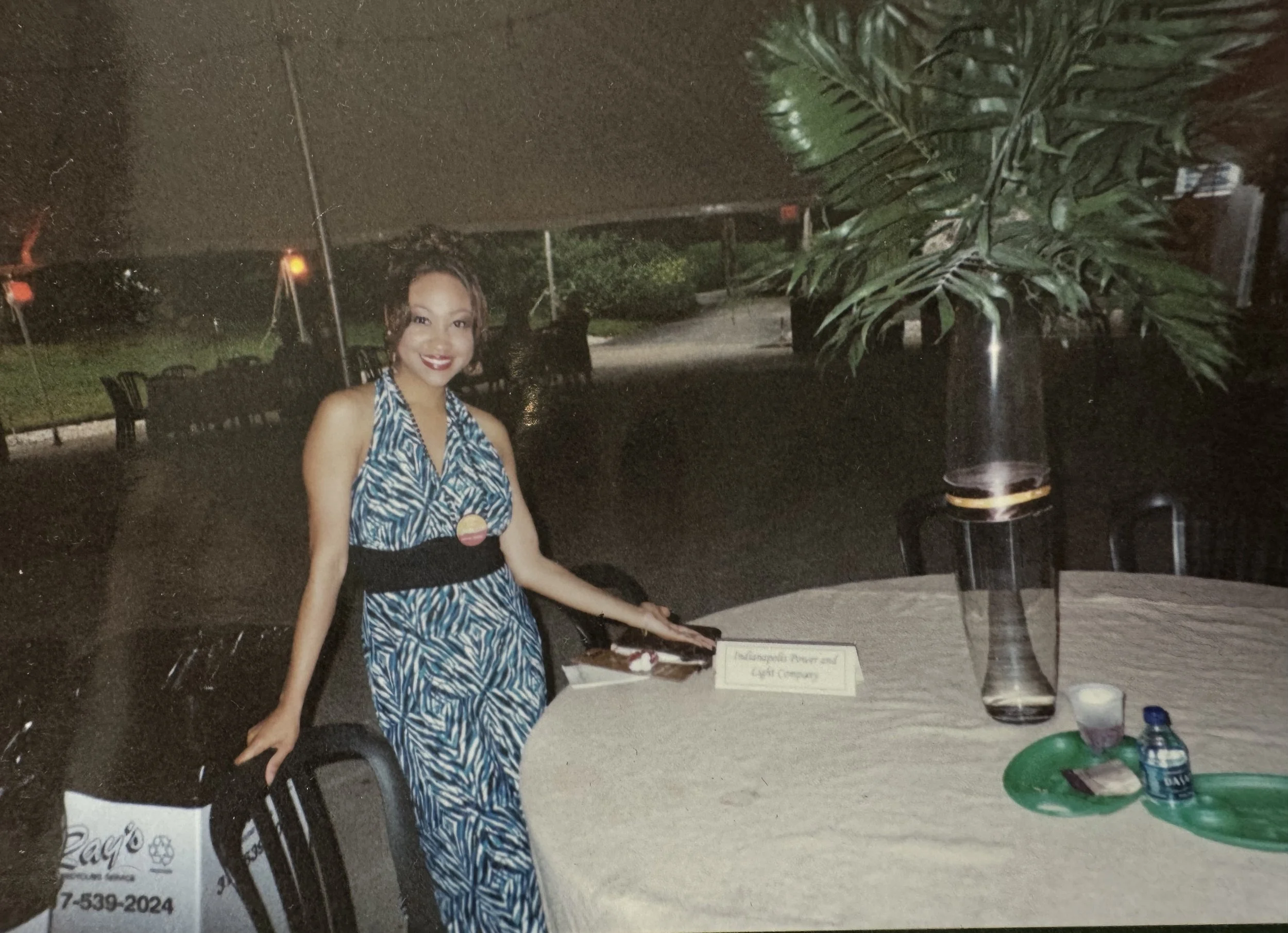 During my public affairs internship at Indianapolis Power & Light Company, one of the perks was attending major events. Here, I attended a reception at the Indianapolis Zoo, next to a table sponsored by IPL. My grad school friend/colleague, Victor Powell, who became a big brother to me, attended the event with me and took this picture. I’m still really good friends with him and his beautiful wife Allynn today. They are indeed my family.