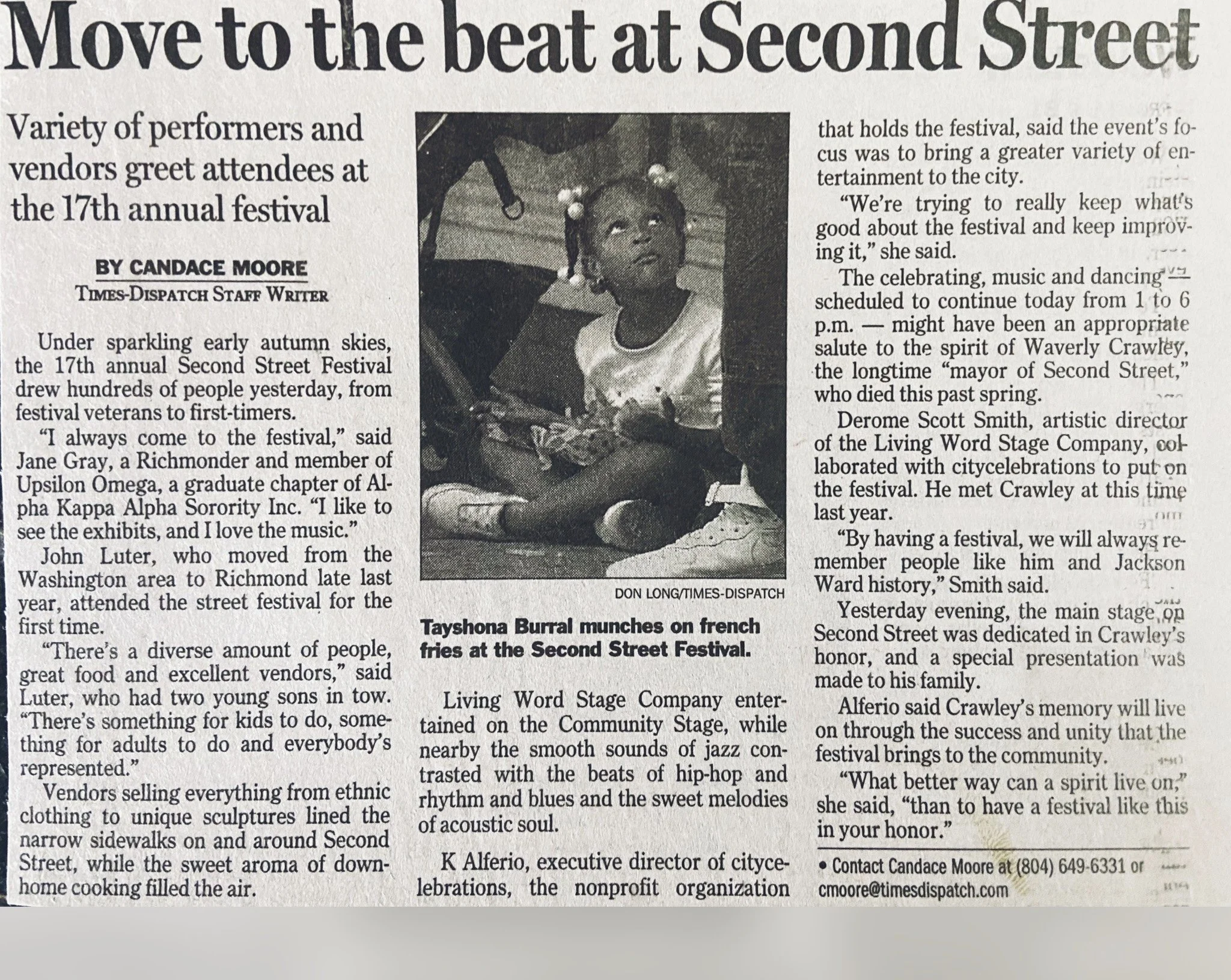 One of my Richmond Times-Dispatch articles published October 2, 2005. I wrote about 10 articles for the paper as an intern.